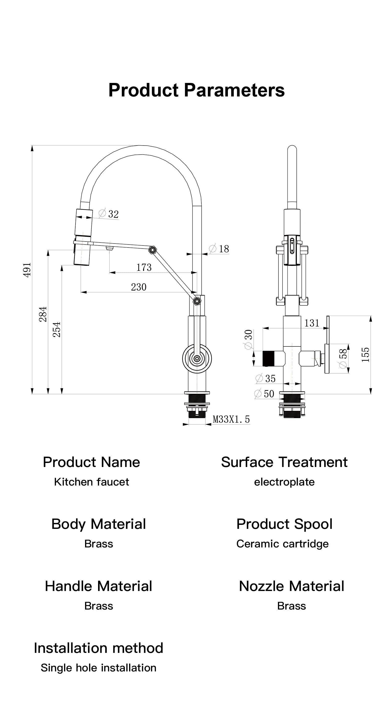 Deck Mounted Installation – Designed for single-hole kitchen sinks