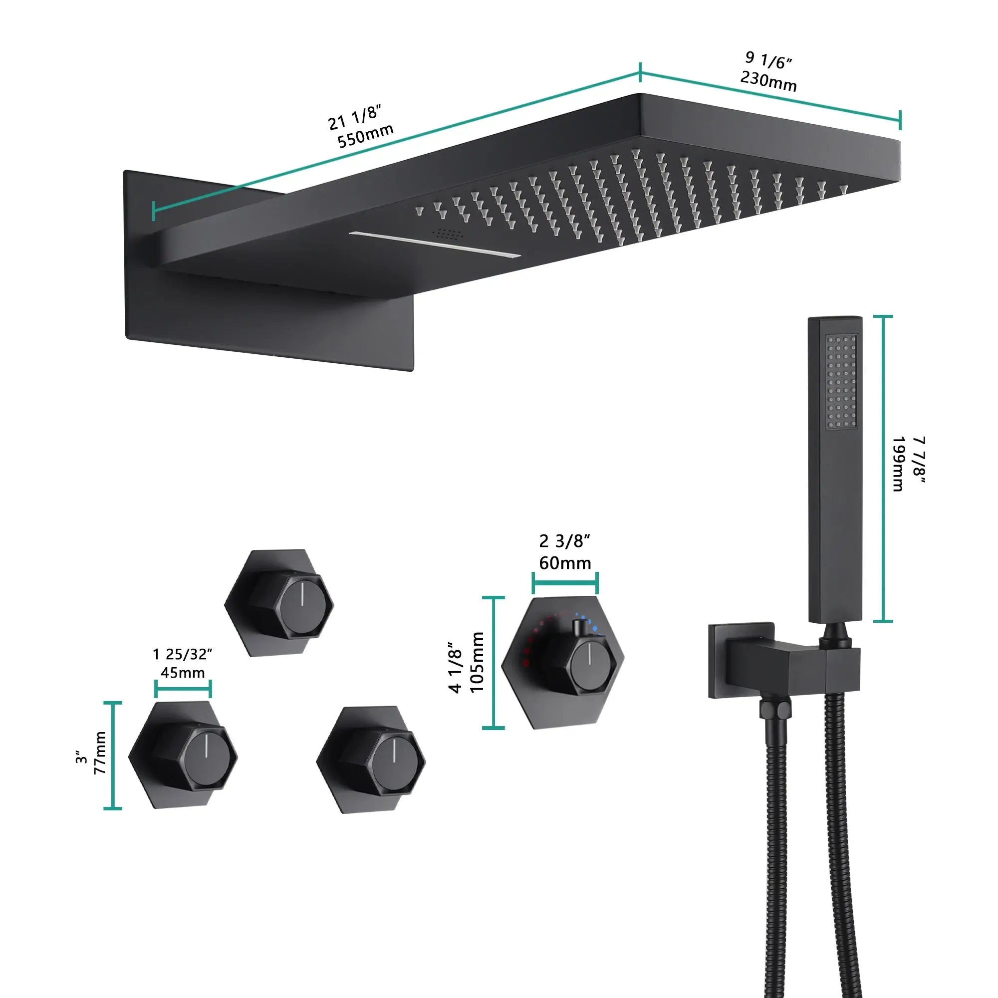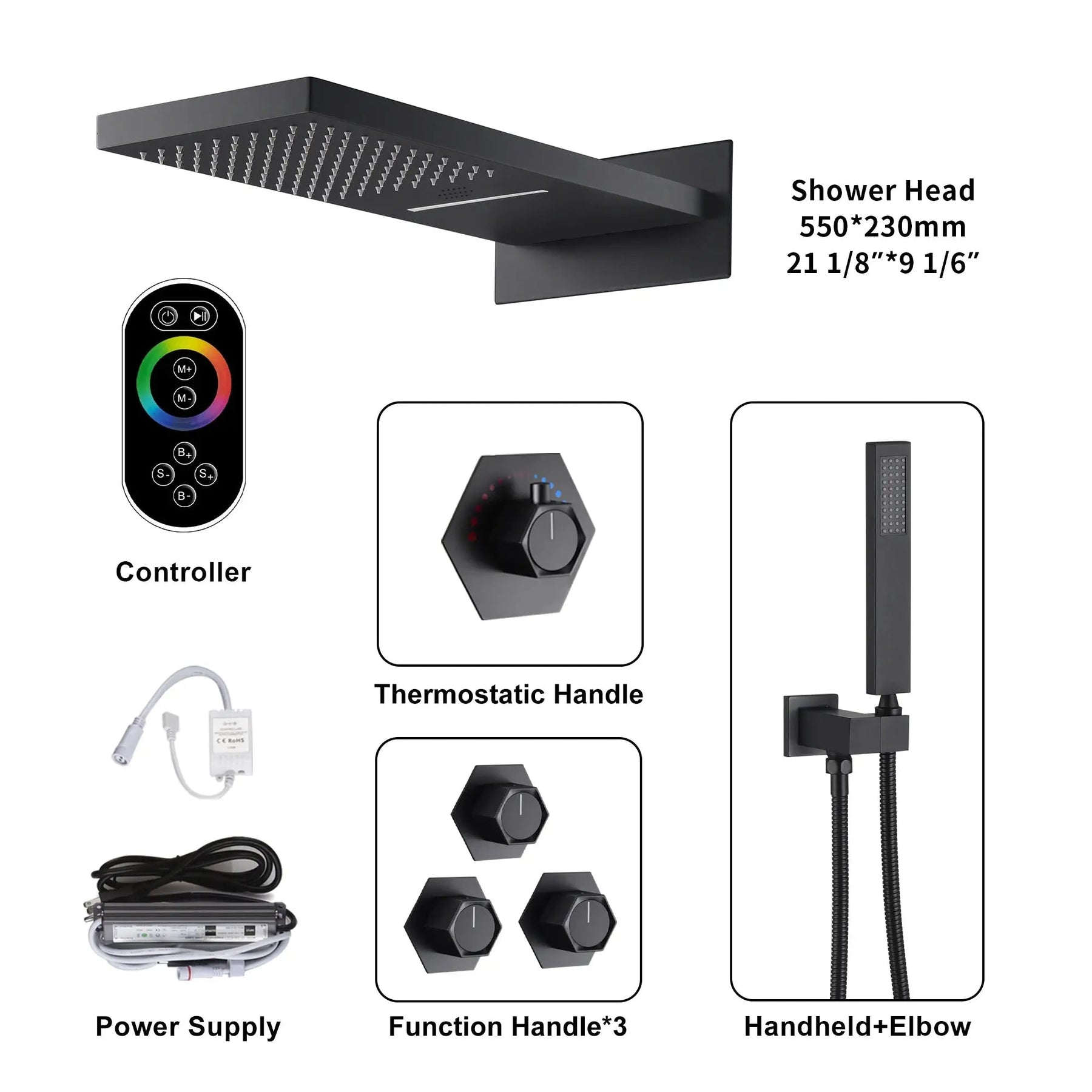 Bluetooth Thermostatic Rain Shower System Set – Solid Brass