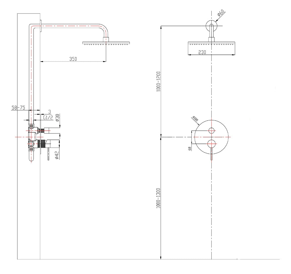 • Installation: Wall mounted, in-wall concealed system