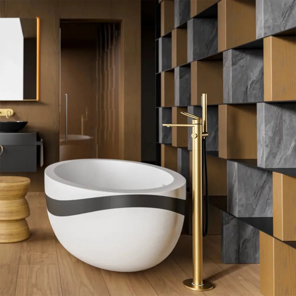 Empolo Luxury Freestanding Bath Shower Mixer Tap – Brushed Brass - Freestanding Bath Shower Mixer TapBathroomLux