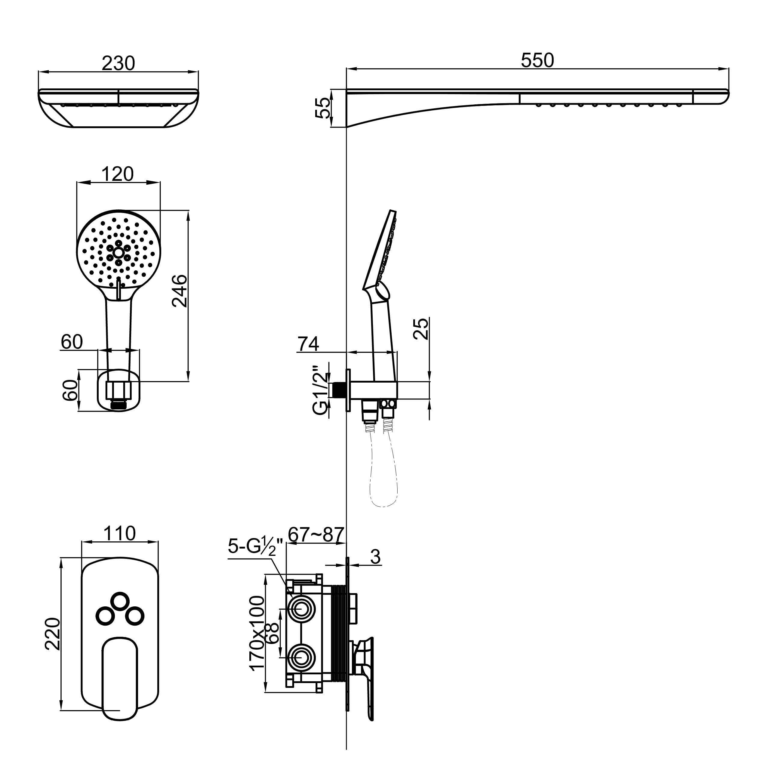 Empolo Concealed Thermostatic Rainfall Shower System