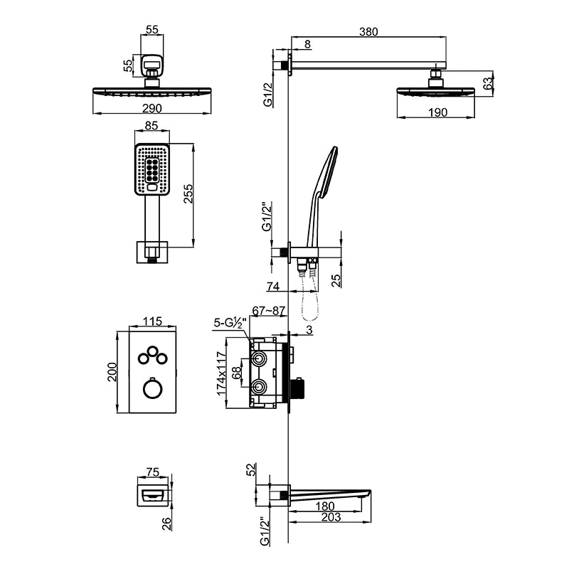 The square rainfall showerheaddelivers a refreshing, spa-like spray pattern, while the single-handle design allows easy and precise control of hot and cold water. Engineered for performance, the set undergoes 0.6–1.5 MPa water pressure testing and 48-hour salt spray tests to ensure top quality and reliability.