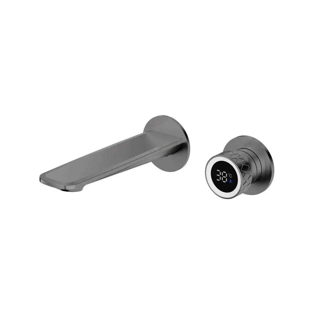 Luxury Gold Brass Wall Mounted Sink Faucet Digital Display Water Mixer Tap - wall mounted bath tapsBathroomLux
