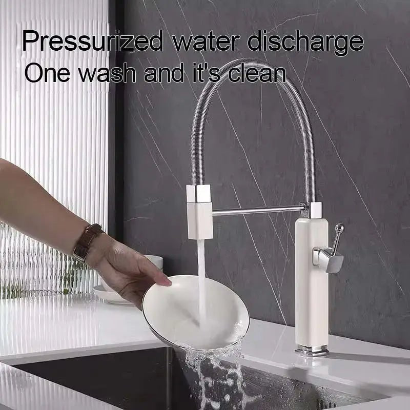 Bring timeless charm to your space with this Brass Vintage Style Pull-Down Kitchen Faucet. Designed with a rotating, extendable sprayer, it combines classic style with modern practicality. Built to last with a cartridge tested for 500,000 uses and certified to CE/ROHS standards, it delivers reliable hot and cold water flow for both home and hotel applications.