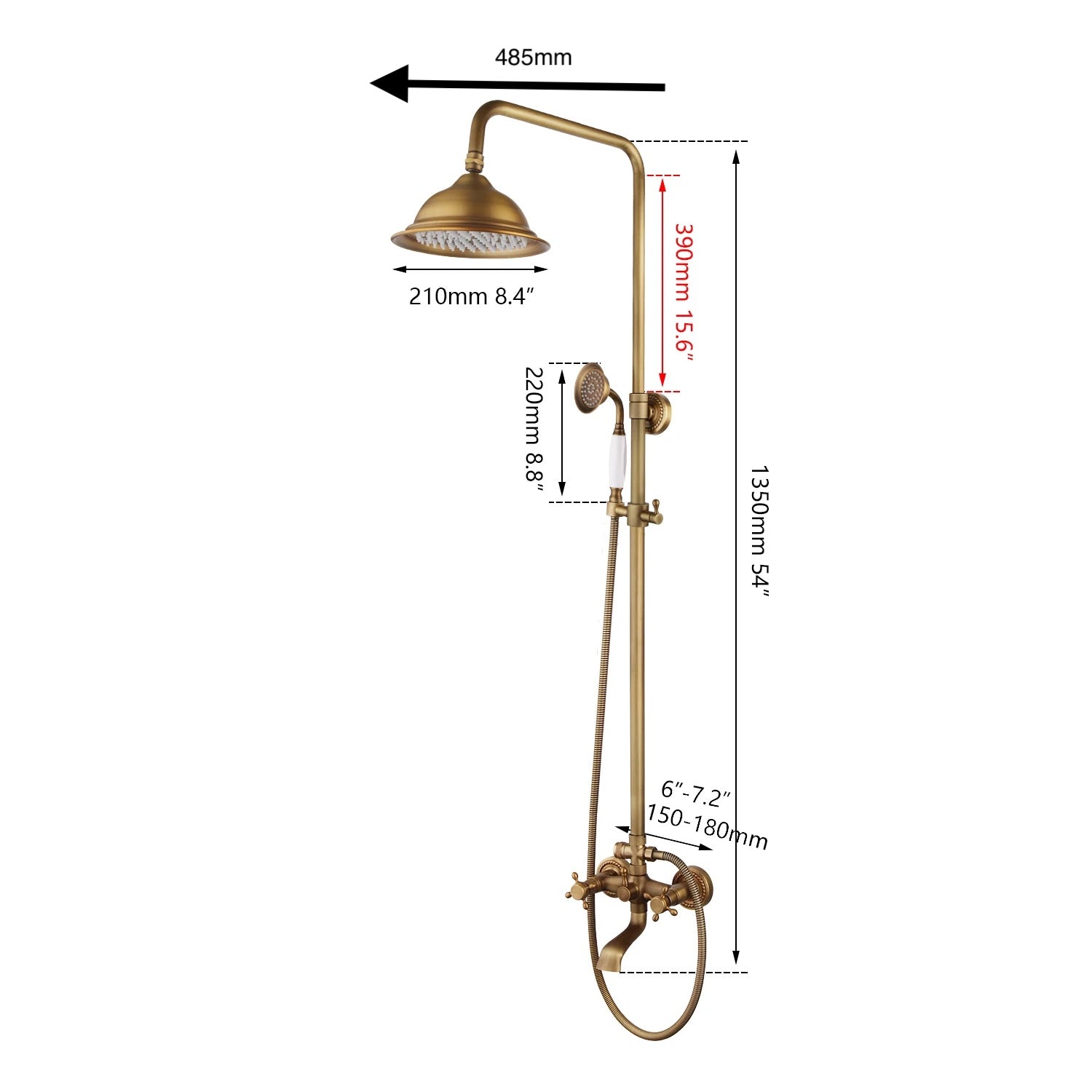 ✅ Premium Brass Rainfall Shower – 8-inch rainfall showerhead and matching hand shower crafted from solid brass for a luxurious, spa-like shower experience.